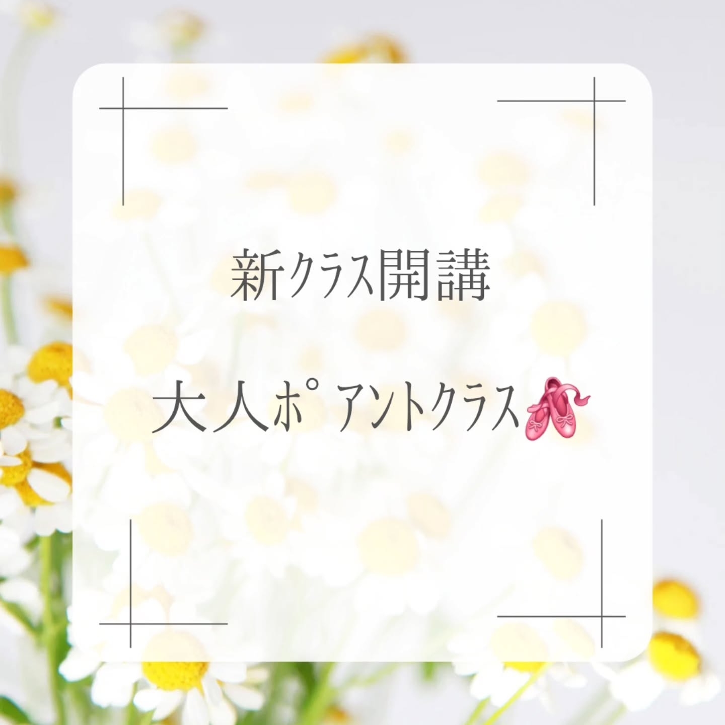 インスタ記事 https://www.instagram.com/p/DS_NLXlEnon/ 土曜日の隔週で大人ポアントクラスが始まります🩰 ポアントクラスは大人クラス(17:20~18:20)の後18:30~19:15までの45分間です。 ポアントクラスの後、大人Vaクラスがあります。 ポアントクラスとVaクラスも共通チケット(10枚15000円)を購入していただきレッスン参加が可能になります。 興味のある方、見学も可能ですので一緒にレッスンしてみませんか?🤗 ご連絡お待ちしております!